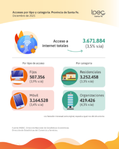 Accesos a Internet según categoría y tipo de acceso. Provincia de Santa Fe. Diciembre 2016 – diciembre 2025