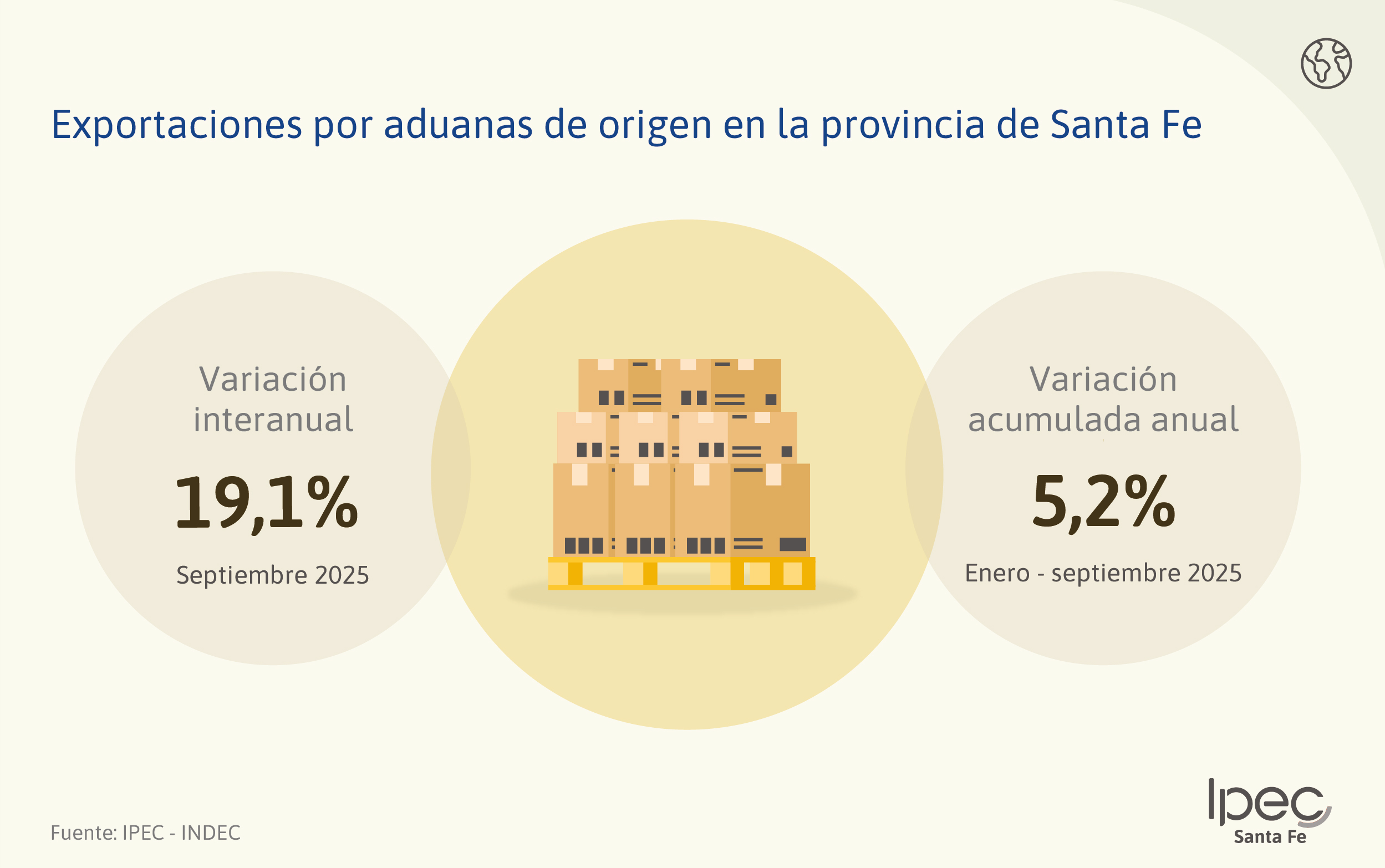 El informe de Exportaciones por aduanas de origen y aduanas de salida de la provincia de Santa Fe muestra de forma mensual la evolución de las exportaciones registradas en las aduanas de la provincia de Santa Fe. Los datos se presentan por aduanas, según rubros y países de destino.